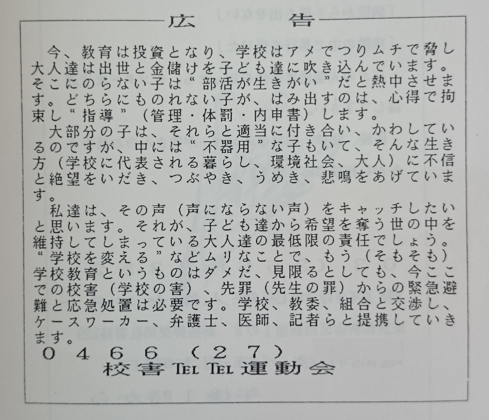 1990年代に神奈川県藤沢市にあった民間の学校関連トラブル(校害)の相談窓口。